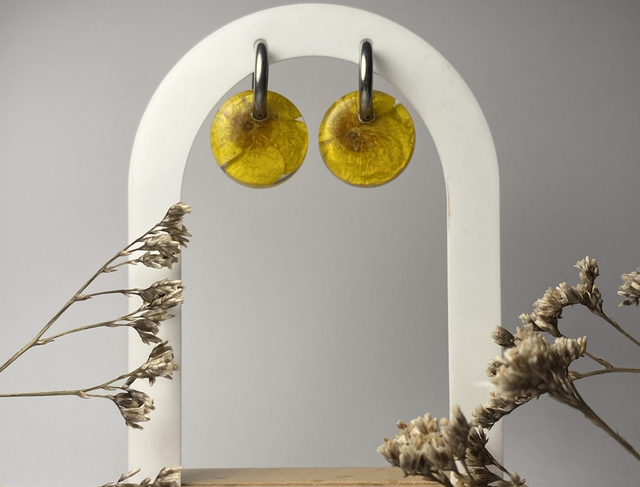 Chaque charm est fabriqué à la main avec de véritables fleurs séchées par mes soins. Comme chaque fleur est unique, vos boucles le seront aussi !