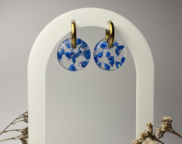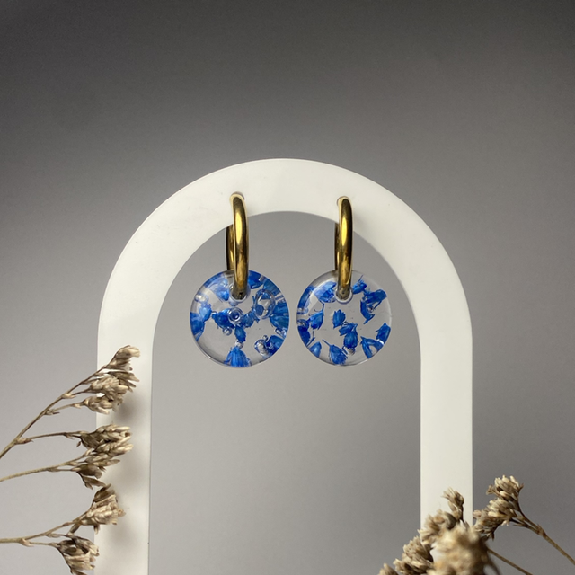 Chaque charm est fabriqué à la main avec de véritables fleurs séchées par mes soins. Comme chaque fleur est unique, vos boucles le seront aussi !