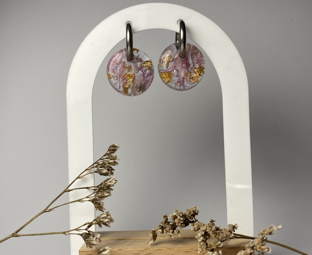 Chaque charm est fabriqué à la main avec de véritables fleurs séchées par mes soins. Comme chaque fleur est unique, vos boucles le seront aussi !