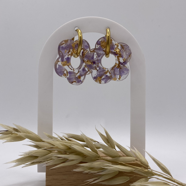 Chaque charm est fabriqué à la main avec de véritables fleurs séchées par mes soins. Comme chaque fleur est unique, vos boucles le seront aussi !