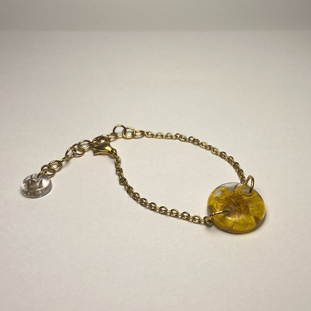 Chaque charm est fabriqué avec de véritables fleurs séchées récoltées et séchées par mes soins. Chaque fleur est différente, donc chaque bracelet est unique !
