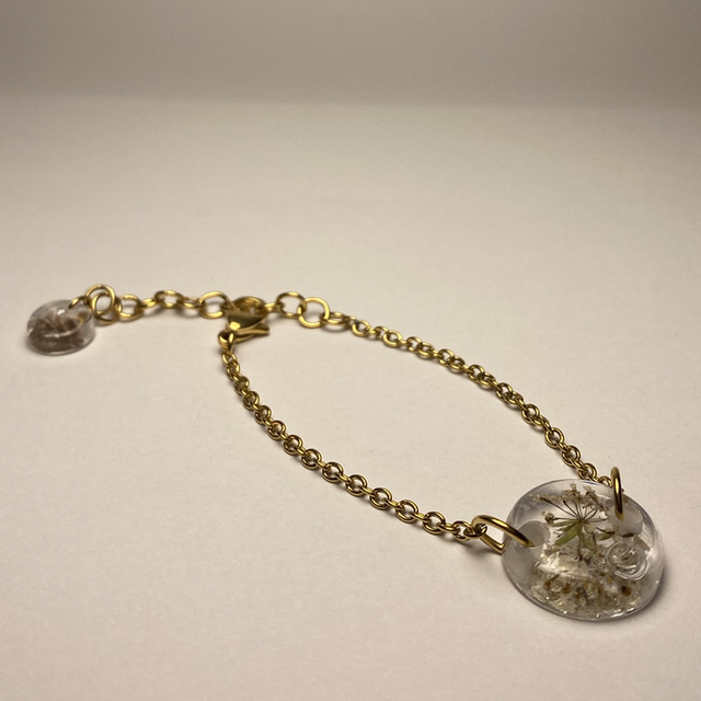 Chaque charm est fabriqué avec de véritables fleurs séchées récoltées et séchées par mes soins. Chaque fleur est différente, donc chaque bracelet est unique !