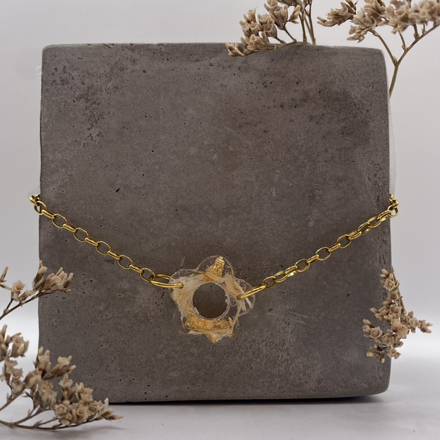 Chaque charm est fabriqué avec de véritables fleurs séchées récoltées et séchées par mes soins. Chaque fleur est différente, donc chaque bracelet est unique !