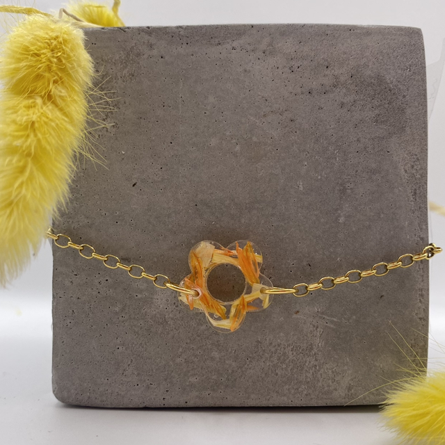 Chaque charm est fabriqué avec de véritables fleurs séchées récoltées et séchées par mes soins. Chaque fleur est différente, donc chaque bracelet est unique !