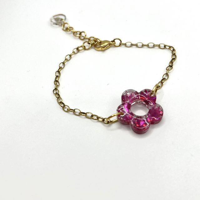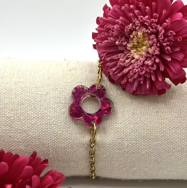 Chaque charm est fabriqué avec de véritables fleurs séchées récoltées et séchées par mes soins. Chaque fleur est différente, donc chaque bracelet est unique !