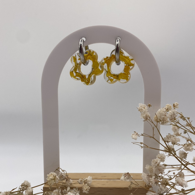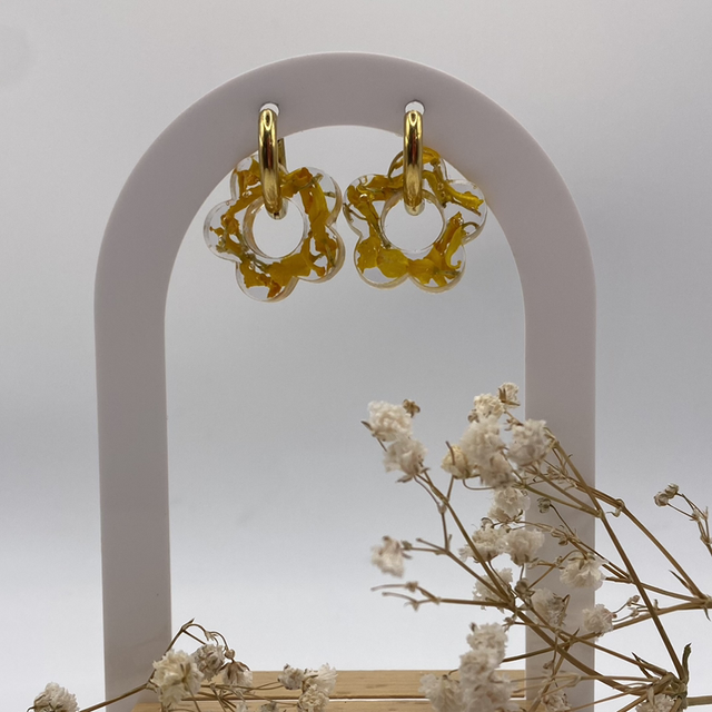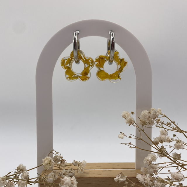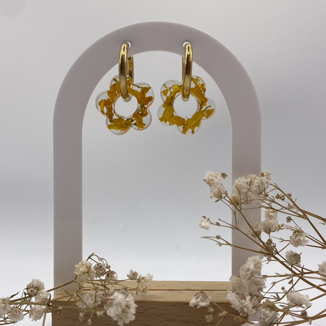 Chaque charm est fabriqué à la main avec de véritables fleurs séchées par mes soins. Comme chaque fleur est unique, vos boucles le seront aussi !
