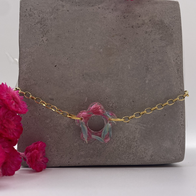 Chaque charm est fabriqué avec de véritables fleurs séchées récoltées et séchées par mes soins. Chaque fleur est différente, donc chaque bracelet est unique !