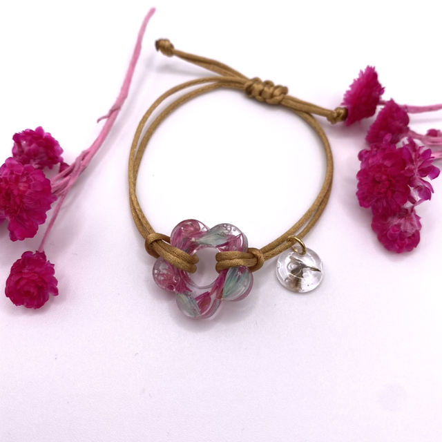 Chaque bracelet est réalisé avec de véritables fleurs séchées que je récolte et prépare moi-même. Chaque fleur est différente, donc chaque bracelet est unique !