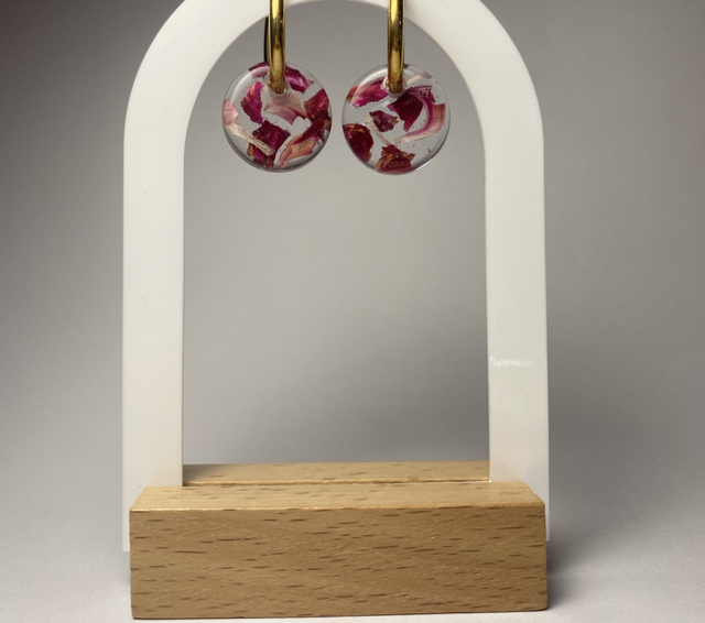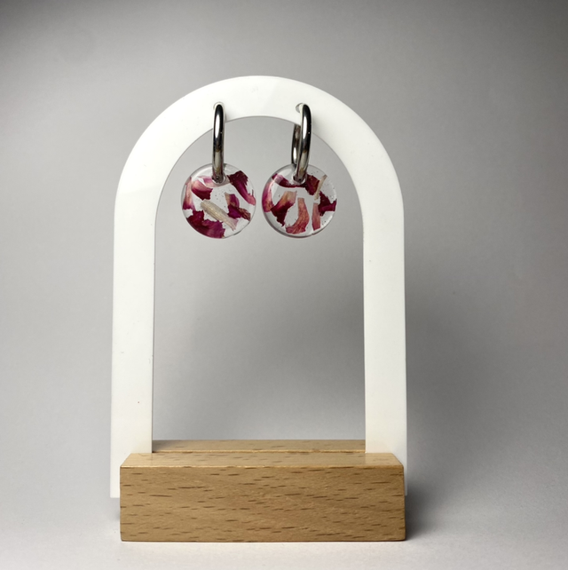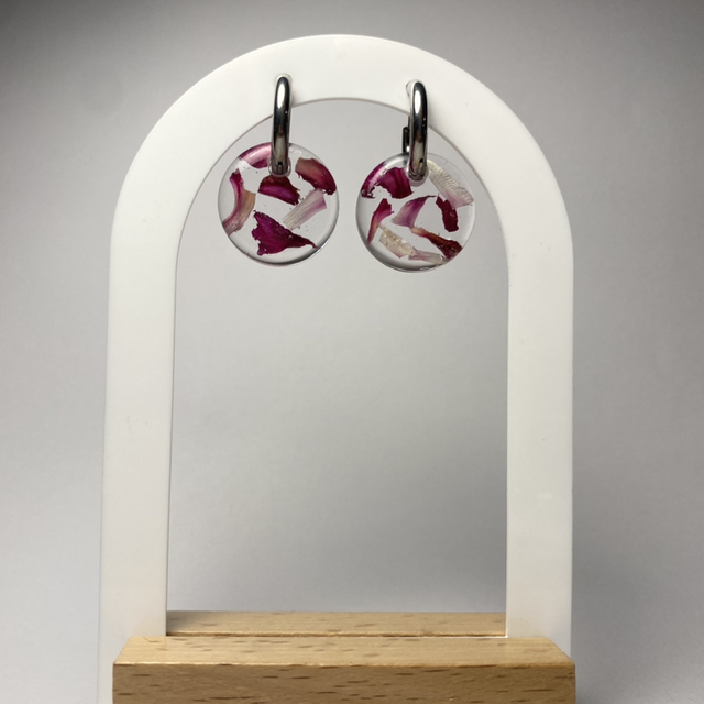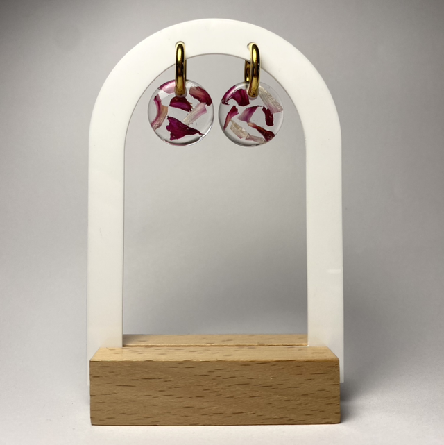 Chaque charm est fabriqué à la main avec de véritables fleurs séchées par mes soins. Comme chaque fleur est unique, vos boucles le seront aussi !