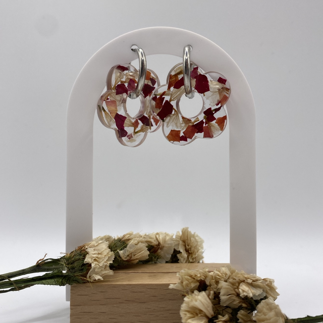 Chaque charm est fabriqué à la main avec de véritables fleurs séchées par mes soins. Comme chaque fleur est unique, vos boucles le seront aussi !