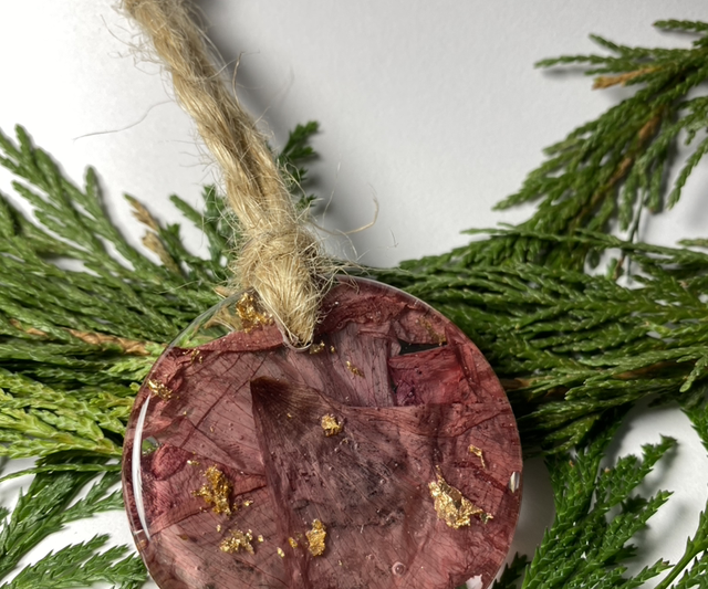 Boules de Noël en résine avec fleur séchée.